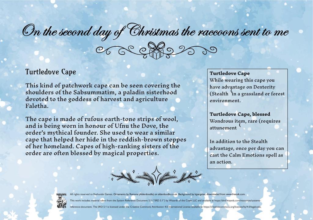 On today’s card you’ll find something you’d expect in the possession of a ranger rather than a paladin. Not all paladins are armour-clad crusaders, and not all wear capes. The Sabsummatim do, and you can read a bit about those here: