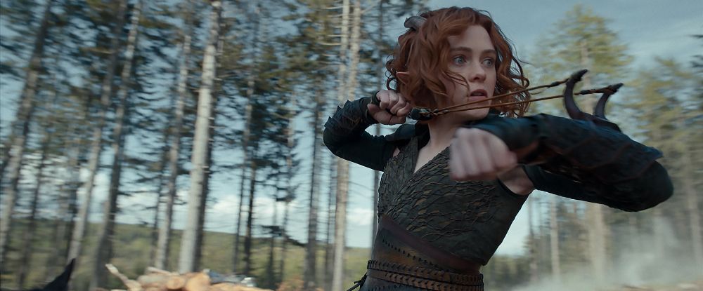 I have left this one for the end of the article. It could be seen in the trailer, but I wanted to watch the full movie before finishing this article. The young tiefling druid Doric uses a slingshot mounted sideways on her forearm. She uses it for flinging stones at her enemies, but more like a distraction or stun than for doing serious damage. For that she’s got her Wild Shape. Near the end of the movie Doric also shoots a small sachet from the slingshot, so here it’s used as a delivery system.