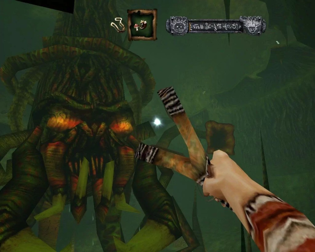 Cyprien shooting some plant monster. Borrowed from myabandonware.com, all rights reserved Ubisoft, In Utero and/or other respective owners.